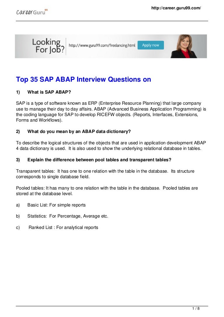 Top 35 Interview Questions On Sap Abap